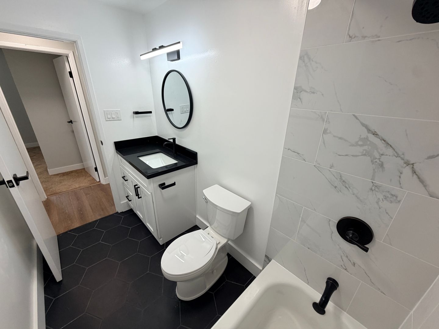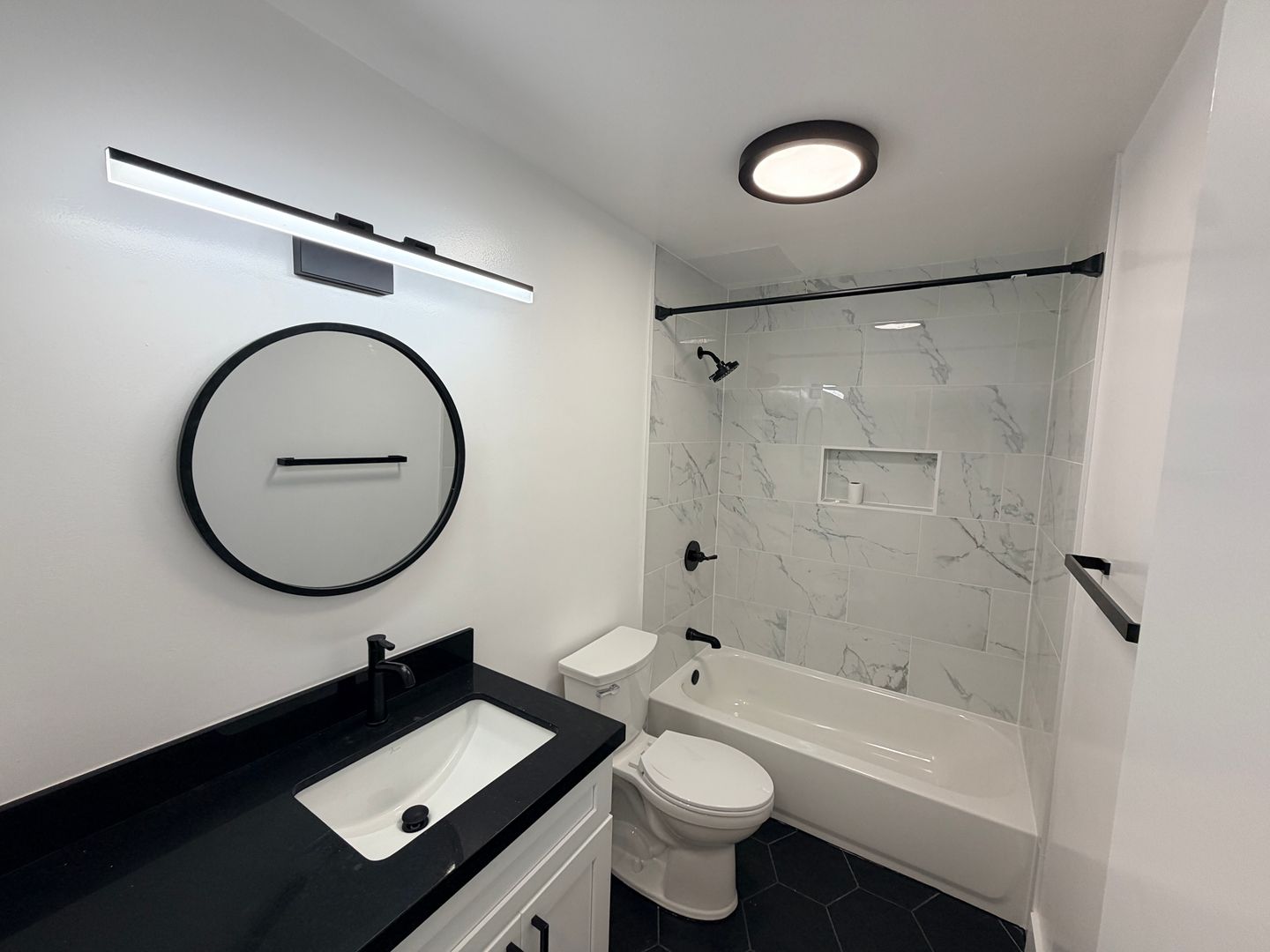 * New bathroom with new tile enclosure.